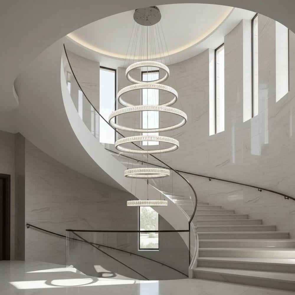 تصميم فاخر يعكس الأناقة مع كل شعاع من الكريستال المضيء. مثالية لغرف المعيشة الكبيرة أو المداخل الملكية."